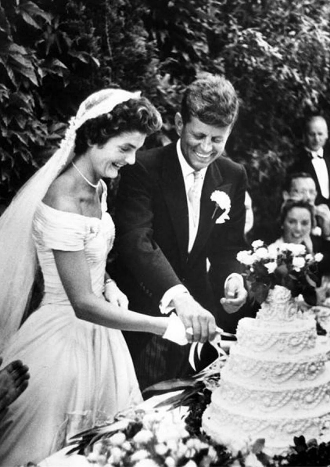 Photographer Arthur Burges took a photo of the Kennedys five-tiered wedding cake during their reception in Newport Rhode Island which drew in more than 1200 guests on Sept. Where to Buy JFKs Wedding Cake. JFK and Jackie Kennedys Wedding Cake from Montilos Baking Company a 70-year-old recipe also served at JFKs Inaugural Ball.