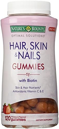 Amazon Com Hair Skin And Nails Vitamins With Biotin Vitamin C By Nature S Bounty Optimal Solutions Hair Skin And Nails Gummies Strawberry Flavored 80 Gummies 3 Pack 80 Count